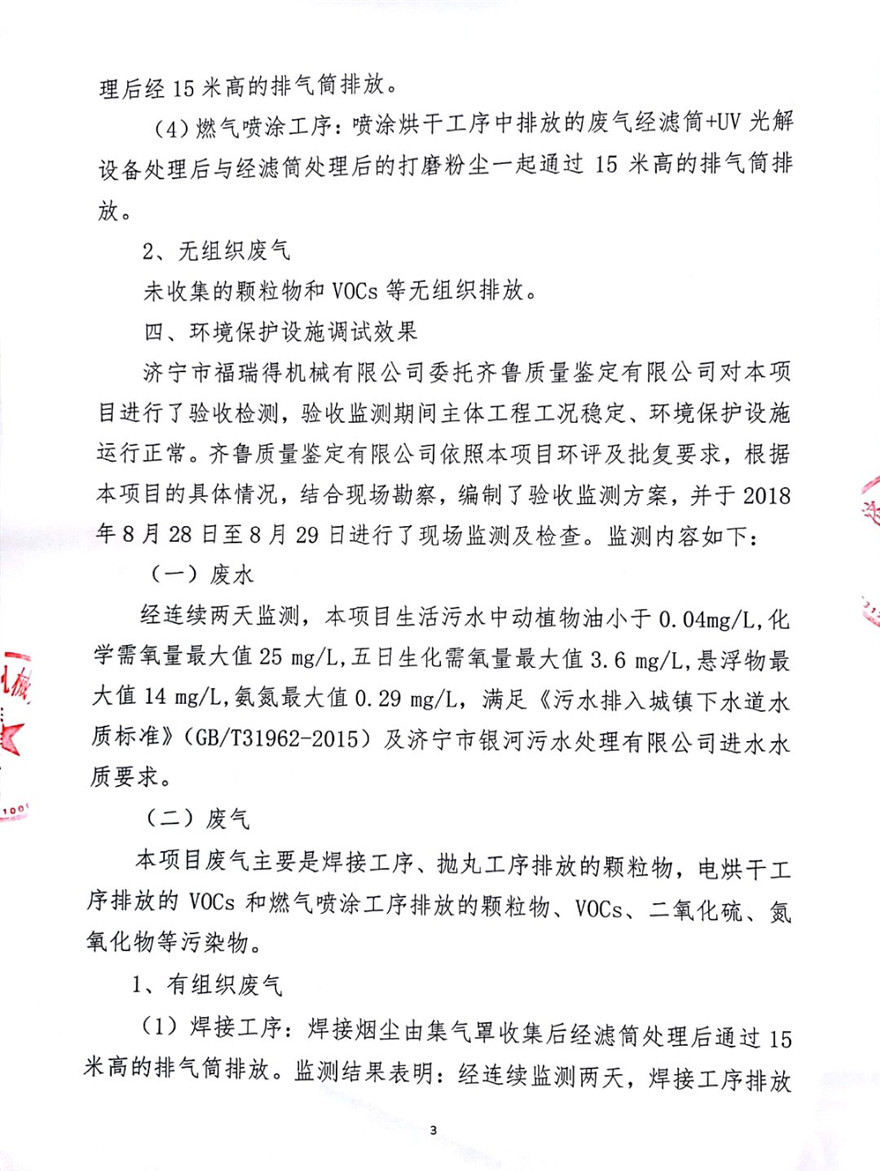 濟(jì)寧市福瑞得機(jī)械有限公司年產(chǎn)2600臺小型機(jī)械及12000噸機(jī)械配件加工項(xiàng)目(廢氣、廢水)竣