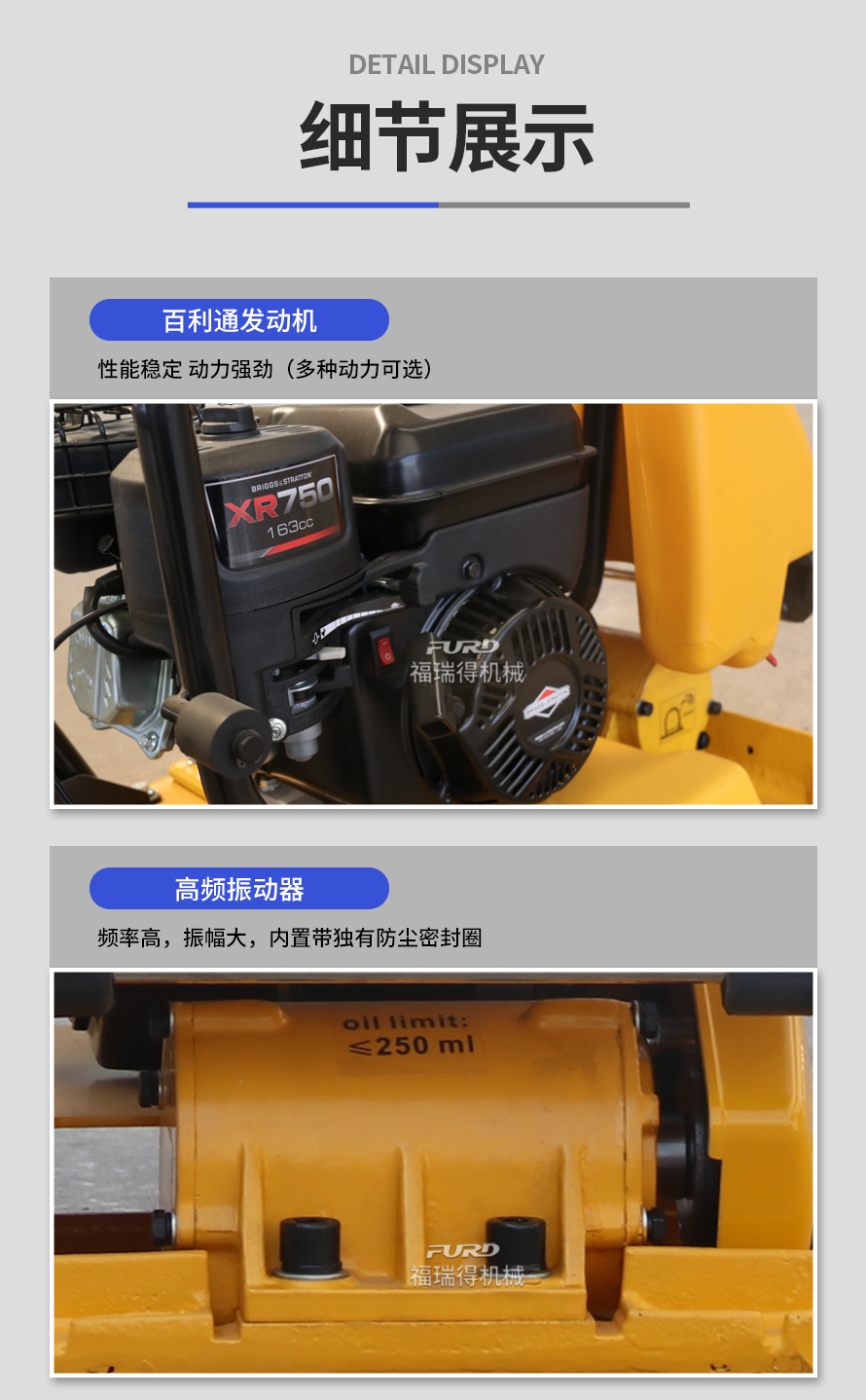 適用于路基邊緣、橋涵、管道、溝槽底部等狹長地帶的壓實。 本田汽油動力,名牌品質(zhì)保證。