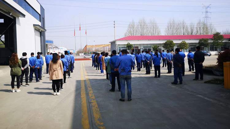 4月4號(hào)10.00整我們福瑞德機(jī)械員工自覺(jué)的集合,表情莊嚴(yán)肅立,集體默哀三分鐘。伴隨著準(zhǔn)時(shí)想起防空警報(bào),我們?nèi)w員工送去了對(duì)逝者的思念,3分鐘讓我們思考太多太多我們福瑞德全體員工放下手中的工作,集體列隊(duì),希望他們一路走好。