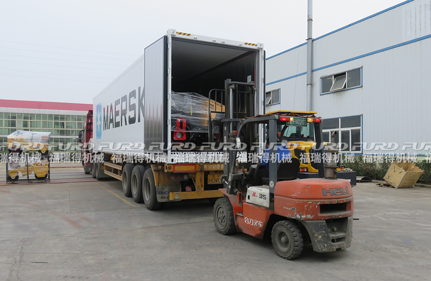 3月19日,福瑞得機械裝柜出口一批座駕壓路機。