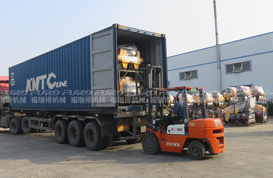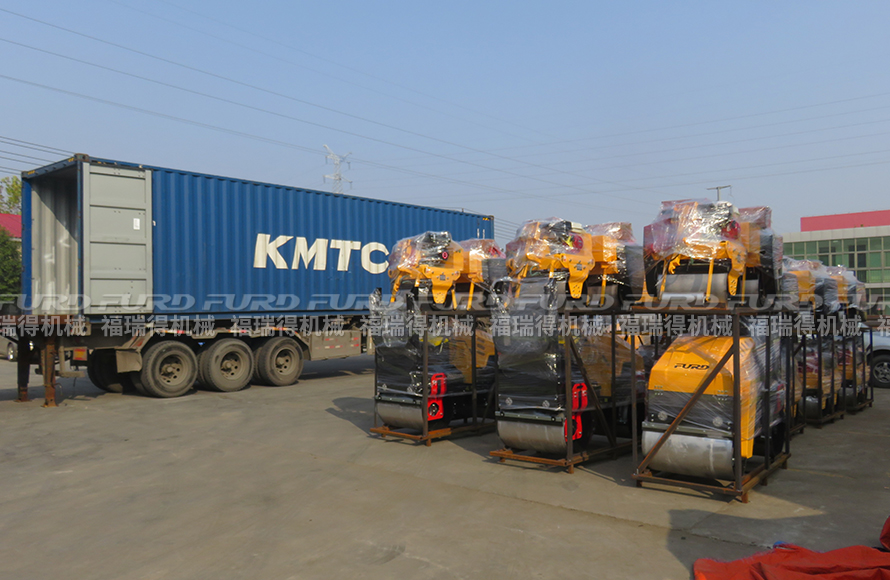 福瑞得機(jī)械19臺(tái)壓路機(jī)打包出口阿聯(lián)酋