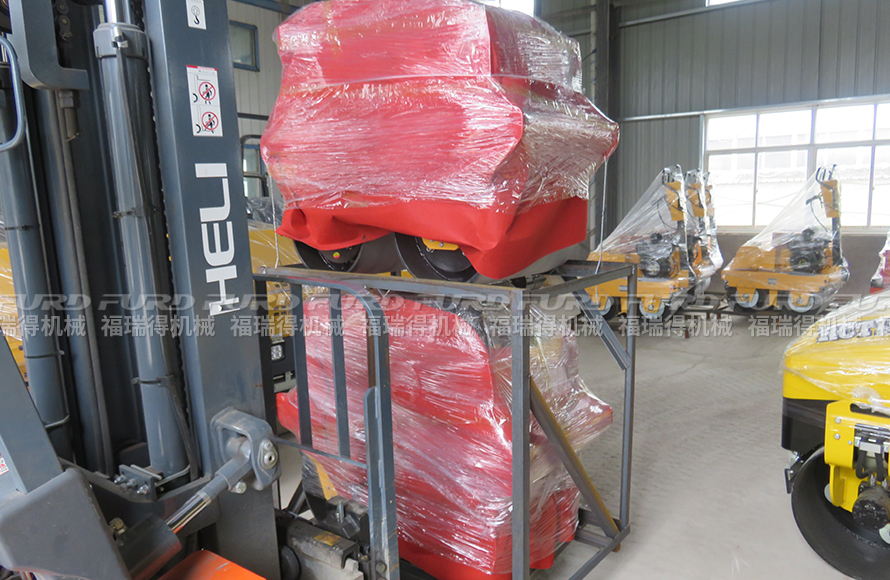 福瑞得16臺(tái)手扶雙鋼輪壓路機(jī)打包裝車發(fā)往湖北