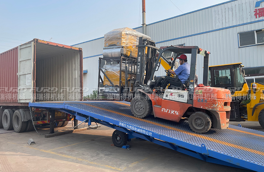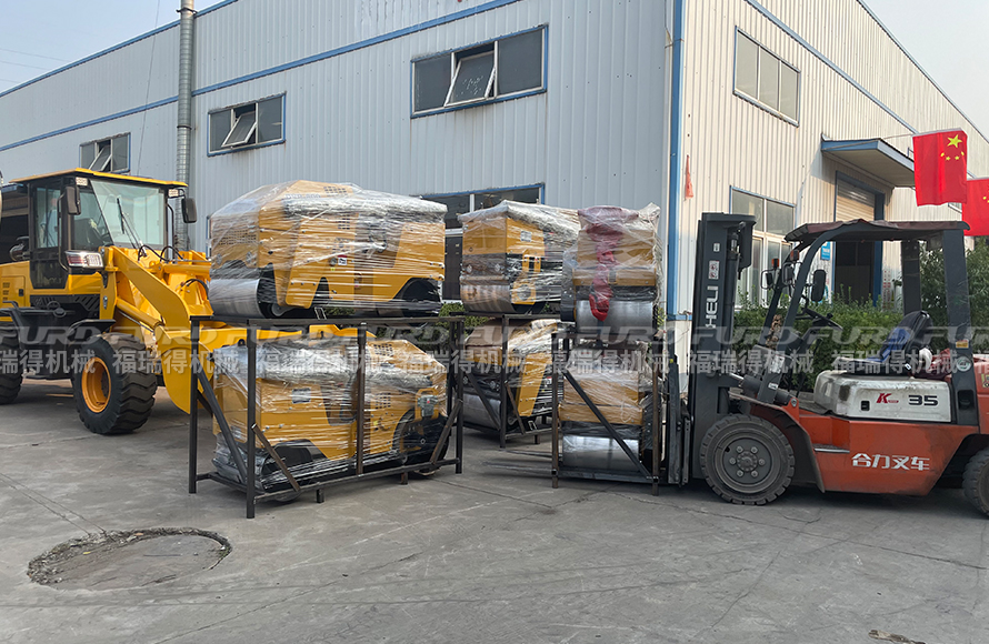 福瑞得機(jī)械一批壓路機(jī)打包裝柜出口印度