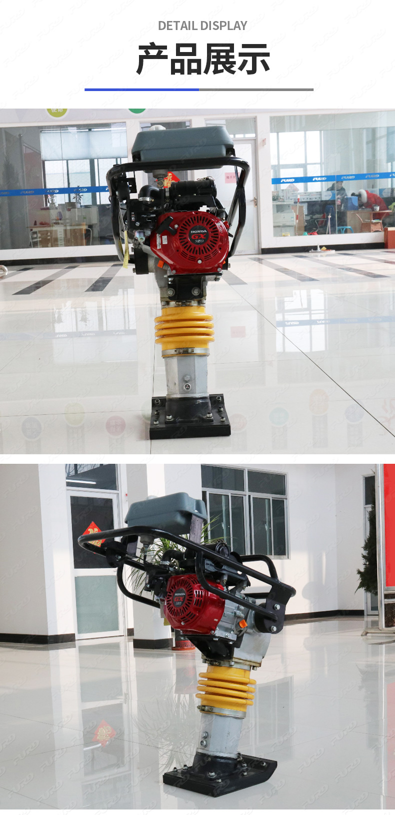 用于公路、市政、電信、煤氣、供水、鐵路等部門對(duì)工程基礎(chǔ)和溝槽回填土的夯實(shí)。