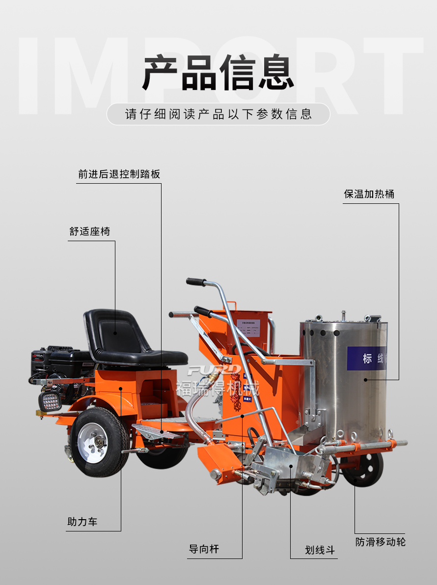應(yīng)用于道路、高速公路、停車場、廣場和跑道的在平整地面上劃出不同約速、指引和警示等規(guī)則限制標(biāo)志的路面施工機械。