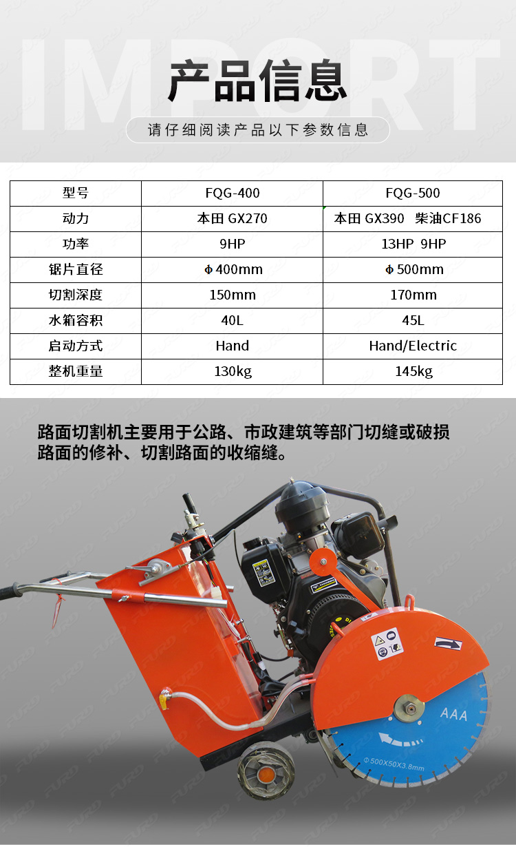 FQG-400/500 路面切割機